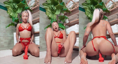 Therealbrittfit Shows Her Toes Then Sits On A Red Dildo