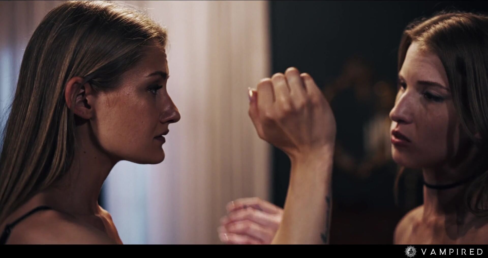 Description: Tiffany clutches her stake as she and the senior hunter creep through the abandoned manor. Moonlight spills across broken marble. Octavia stands in the great hall, blood streaking her leather coat, the vampire’s corpse at her feet. Tiffany runs to embrace her mentor, relief flooding her chest. The other hunter draws silver. Octavia’s eyes glow crimson. She moves faster than sight, pinning Tiffany to the wall, fangs grazing throat. The senior hunter falls, drained. Octavia whispers she spared Tiffany because she wants her alive. She tears away Tiffany’s armor, pushes her onto the cold floor. Octavia spreads Tiffany’s thighs, tongue sliding through wet folds in deliberate lesbian pussy licking strokes. Tiffany gasps, hips lifting to meet the mouth that once trained her. Octavia licks slow circles around her clit, fingers curling inside until Tiffany trembles in helpless release. The hunt ends with Tiffany surrendered beneath her new master.