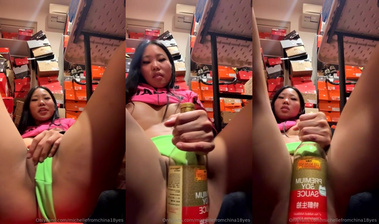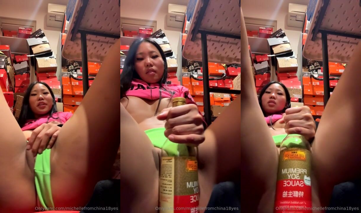 MichelleFromChina18Yes Rubs Young Asian Pussy On A Bottle